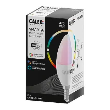 Calex Smart Tuya Wifi E14 Kaars 5W 470lm - 822-840 Afstembaar Wit | RGBW - Dimbaar - Vervangt 40W